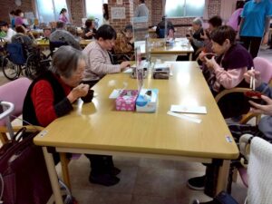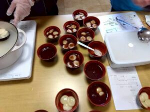 会場には甘い香りのおしるこが広がり、入居者様から「懐かしいね」「温まるね」と笑顔があふれていました。