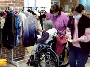 初売りバザーでは、職員手作りの品やおままごと形式のやり取りを楽しんでいただき、昔の買い物風景を思いだしながら、皆さま和やかなひとときを過ごされていました。