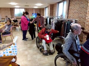 初売りバザーでは、職員手作りの品やおままごと形式のやり取りを楽しんでいただき、昔の買い物風景を思いだしながら、皆さま和やかなひとときを過ごされていました。